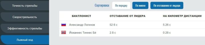 - Форма участников соревнований. Больше всего информации о спортсменах можно узнать при изучении последних 5-6 стартов. Надо учитывать точность и эффективность стрельбы, скорострельность, показатели чистого хода. Недавние травмы серьезно влияют на результат спортсмена, даже если он в последнее время находился в лидерах.