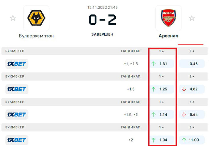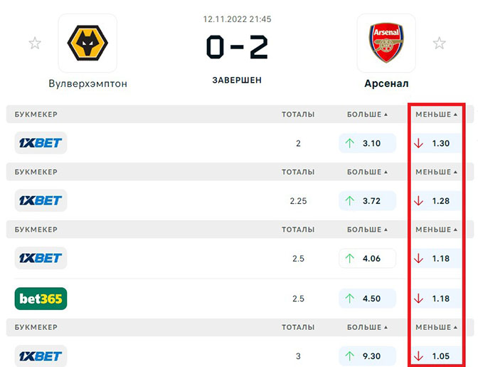 Близкие к 1.2 значения — самые низкие в линии букмекеров. Малыми считаются и котировки около 1.4 — исходы, вероятность прохода которых составляет 60% и выше.