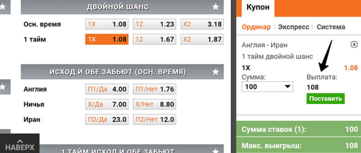 Чтобы рассчитать вероятный выигрыш, нужно сумму пари умножить на котировку. Если беттор поставит 200 рублей на П2 из примера выше, то возможный доход будет 270 RUB.
