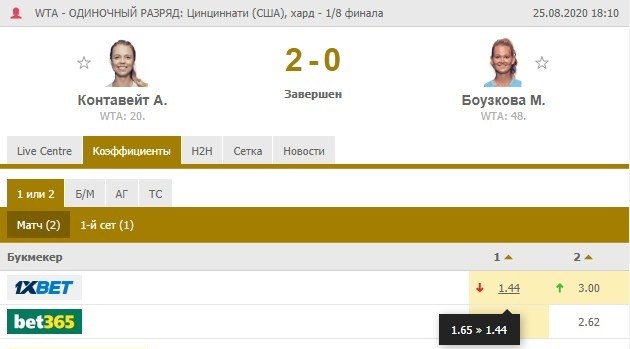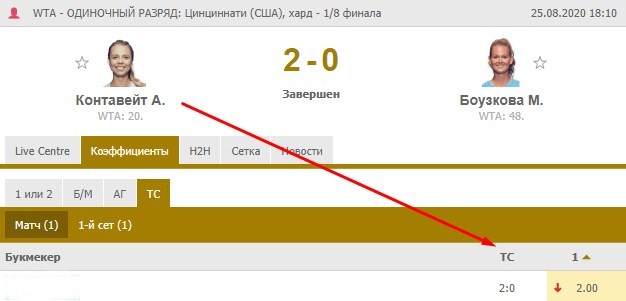 Главное условие — фаворит должен находиться в хорошей игровой форме, тогда он будет периодически побеждать своих соперников со счетом 2:0. Проверить боеспособность объекта пари можно на основе статистики последних матчей и положения в рейтинге ATP/WTA.