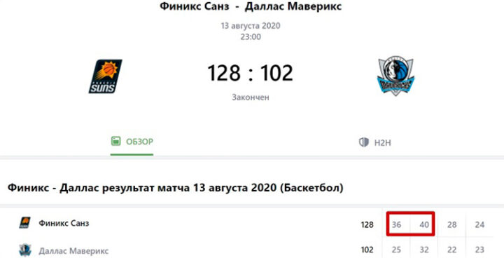 В представленном матче клуб в первой половине набрал 76 очков, что значительно превышает средний показатель. После второй четверти можно было ставить на ИТМ хозяев по высокому коэффициенту. В итоге во второй половине команда набрала 52 очка — это меньше среднего значения.