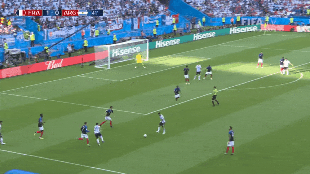 Открывает тройку лучших голов аргентинцев мяч в исполнении вингера «Ювентуса» Анхеля Ди Марии. Французы оставили полузащитника одного далеко за пределами штрафной. Анхель долго не думал и нанес мощнейший удар, к которому Уго Льорис оказался не готов.