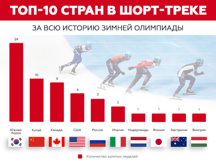 Топ-10 стран в шорт-треке за всю историю зимней Олимпиады