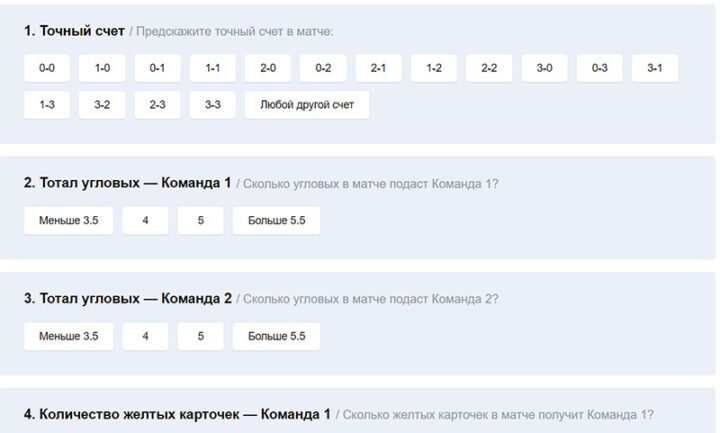 В современных онлайн-тотализаторах требуется угадывать исходы нескольких матчей. Как правило, их число — от 2 до 15.