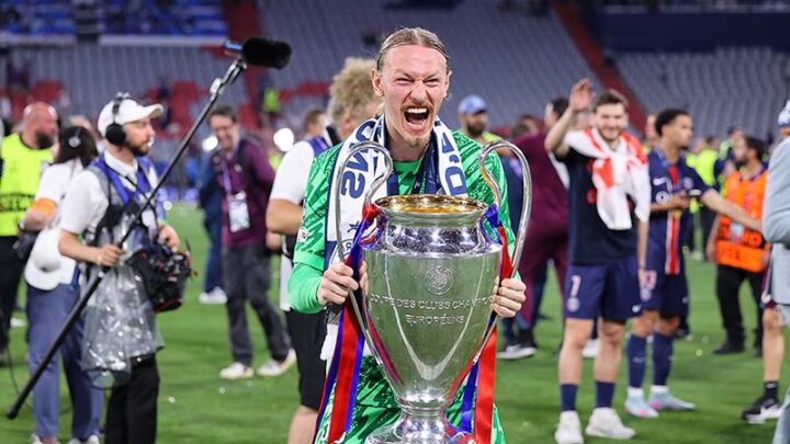 Фото: Zuma/ТАСС 31 мая 2025 года, Мюнхен. ПСЖ — «Интер» — 5:0. Российский вратарь французского клуба Матвей Сафонов с кубком за победу в Лиге чемпионов.