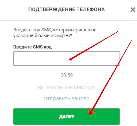 - Если средств на балансе достаточно и идентификация пройдена, на указанный в профиле телефон придет СМС с четырехзначным кодом, который требуется ввести в появившемся окне.