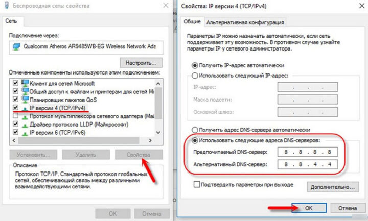 - В основной DNS вставить значение 8.8.8.8, в альтернативный — 8.8.4.4.