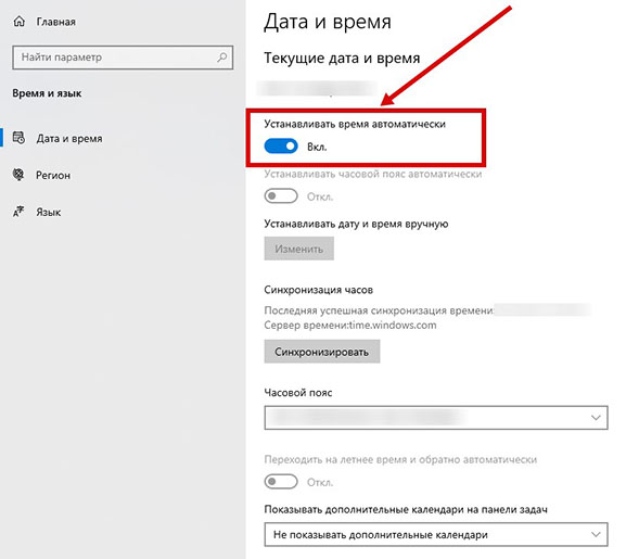 Если в операционной системе сбились эти настройки, то зайти на сайты с протоколом https не получится. Чтобы изменить дату и время в Windows, необходимо нажать на плашку с ними в правом нижнем углу экрана (стандартное расположение). Далее перейти в параметры. В настройках убрать ползунок с автоматического определения этих значений.